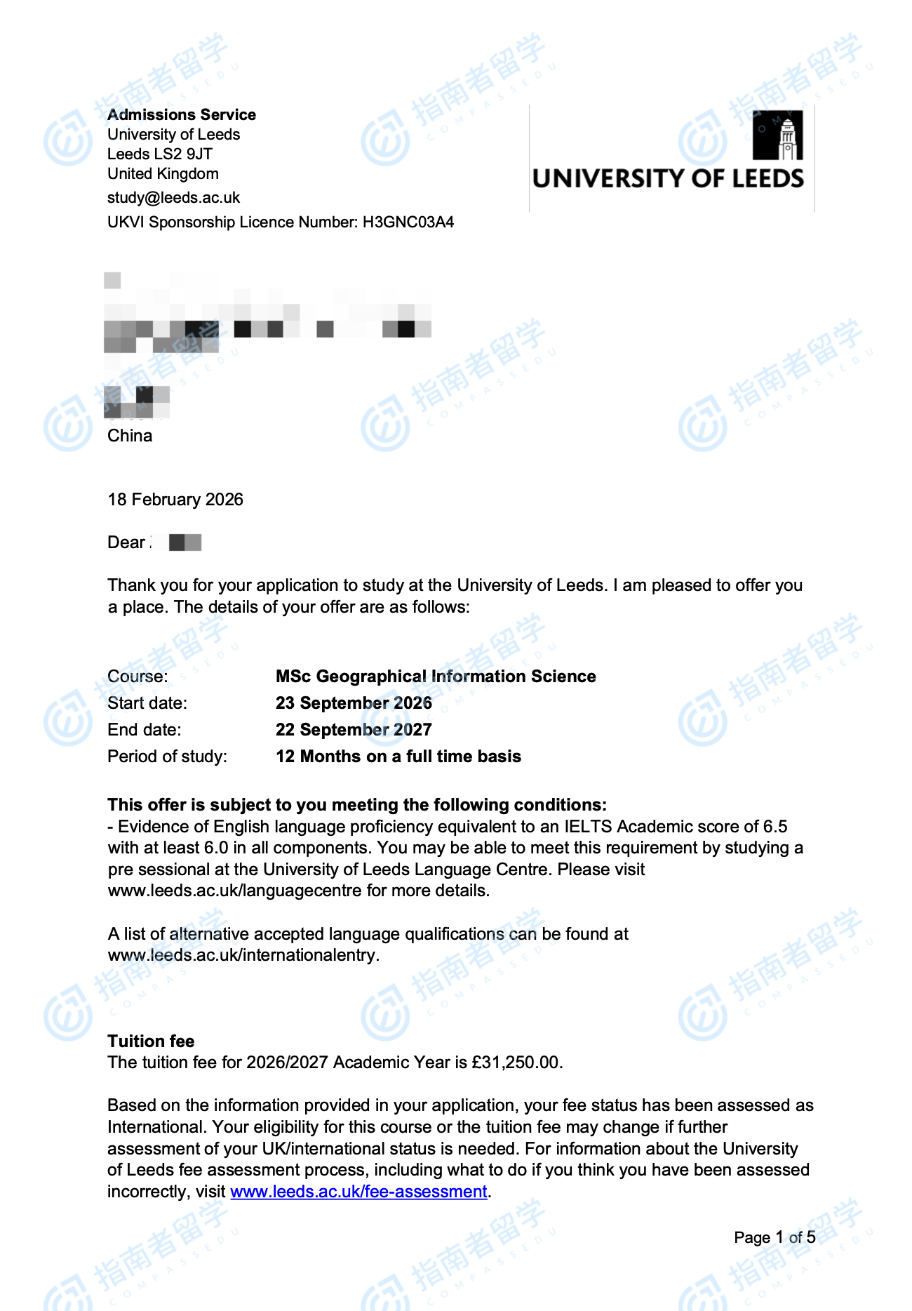 利兹大学地理信息科学理学硕士研究生offer一枚