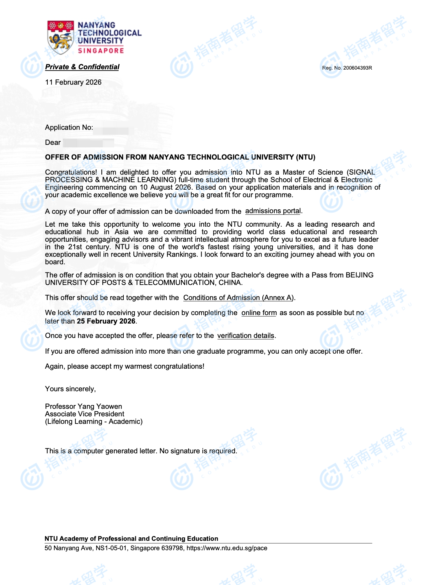 南洋理工大学信号处理和机器学习理学硕士研究生offer一枚